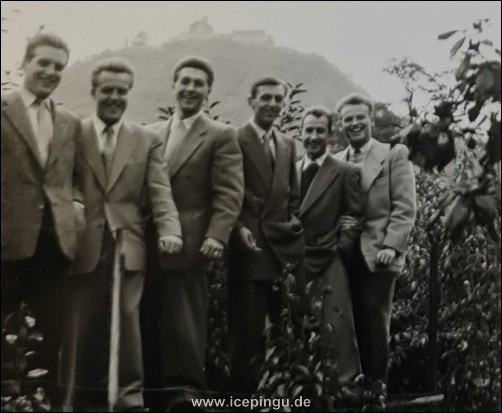 | Basketball, Fußball, Klepperbootfahren, Roller-Touren und … Kegeln. Aus der unglaublichen Kameradschaft heraus entstand nach dem Gewinn der Meisterschaft der Kegelverein "Pav drop" ( übersetzt soviel wie "Los / jetzt drauf" ). Fast 75 Jahre traf man sich zu lustigen Abenden und erst 2024, nach dem Tod von Schorsch Pescher, beschloß man, den Verein aufzulösen. Einen tollen Einblick über die jahrelange enge Verbundenheit der Meisterspieler und Kegelbrüder geben die Fotobücher von "Schorsch" Pescher. Lieben Dank an Gero Pescher für den Einblick und die Möglichkeit, das zu zeigen. | |